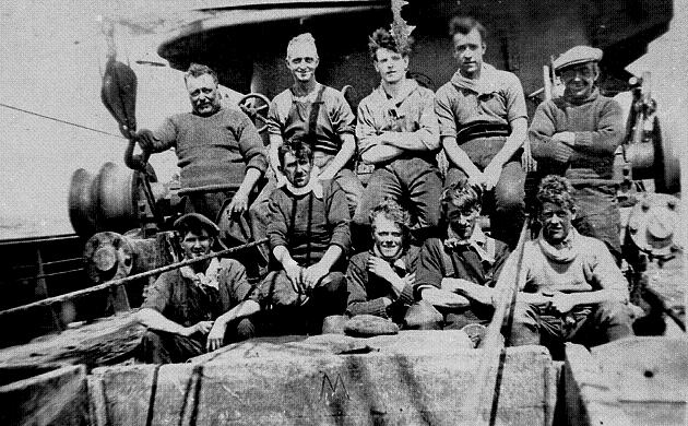 Back Row L-R: Skipper Billy Jones, ?, ?, Ch. Eng Jim Jones & Bosun Carol